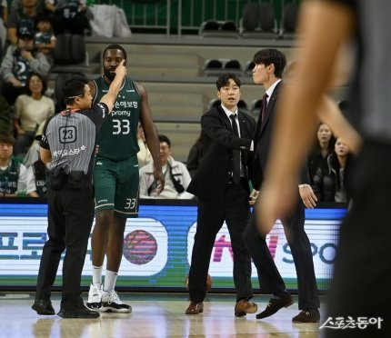오늘 경기종료를 앞두고 서울SK 안영준의 쇄기 3점포가 터진 직후 파울을 불지 않았다며 원주DB 김주성 감독이 심판 판정에 흥분해 경기장 중앙까지 난입해 격렬히 항의하다 연속 테크니컬 파울을 받고 양복 상의를 벗어던지며 퇴장 당하고 원주DB 용병 치나노 오누아쿠 도 테크니컬 파울을 받고 퇴장 당하는 사태가 발생 했다.