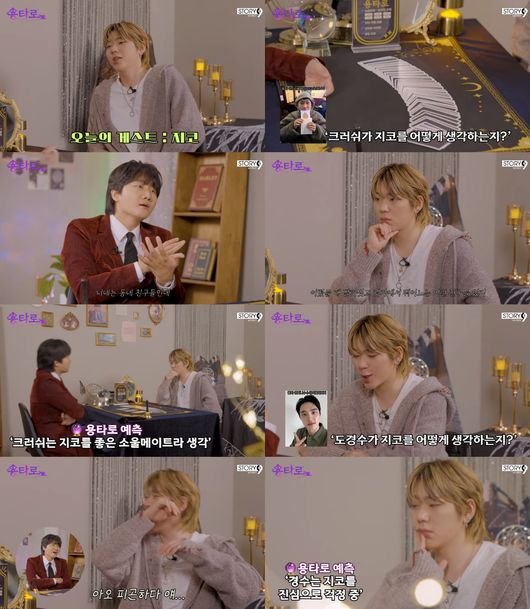 지코가 뽑은 타로 카드를 읽으며 이용진은 “크러쉬는 지코에 대해 어린 아이처럼 순수한 마음을 가지고 있다”며 “지금의 관계에 매우 만족한다”고 해석했다. 이어 “말하자면 어릴 때부터 빨가벗고 놀던 친구다. 질투나 견제가 전혀 없다. 소울메이트 라고 나온다”고 설명했다. 이용진은 “만약에 이게 아니면 너도 나와서 해명해라”라고 덧붙여 웃음을 주기도 했다. 지코 역시 “우리는 정말 허물 없는 관계”라고 말했다.