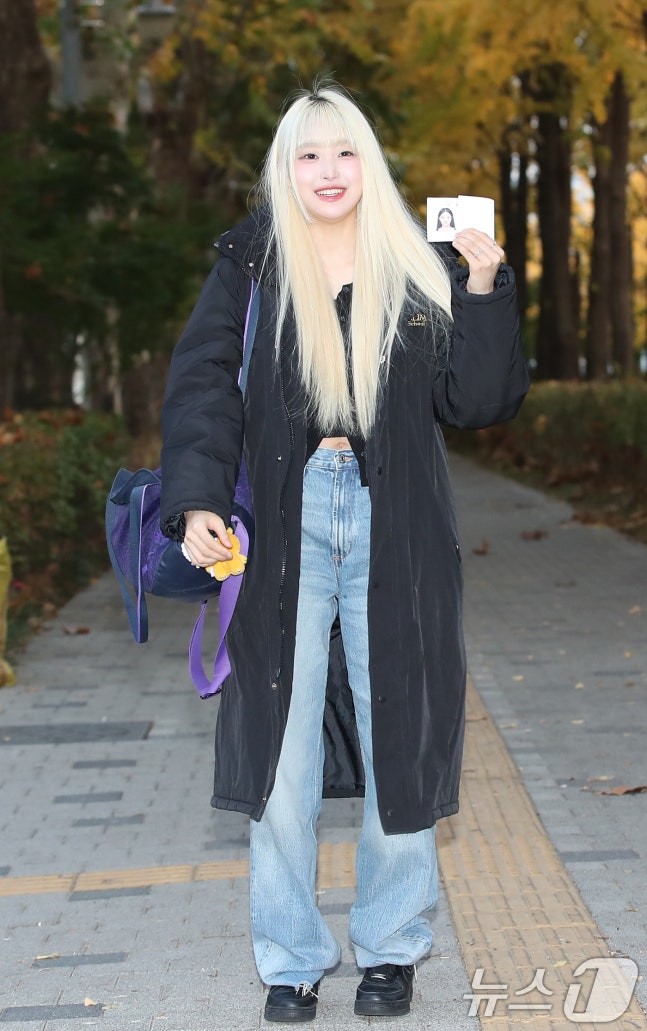 2025학년도 대학수학능력시험일인 14일 오전 서울특별시교육청 16지구 제23시험장인 송파구 정신여자중고등학교 앞에서 걸그룹 세이마이네임 소하가 수험표를 확인하고 있다. ⓒ News1 권현진 기자