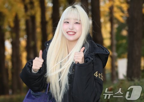 2025학년도 대학수학능력시험일인 14일 오전 서울특별시교육청 16지구 제23시험장인 송파구 정신여자중고등학교 앞에서 걸그룹 세이마이네임 소하가 엄지를 들고 인사를 하고 있다. ⓒ News1 권현진 기자(서울=뉴스1) 권현진 기자 = 걸그룹 세이마이네임 소하가 평범한 고등학생으로 돌아가 대학수학능력 시험에 응시했다.