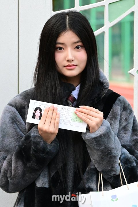 곽경훈 기자(kphoto@mydaily.co.kr)[마이데일리 = 곽경훈 기자] 14일 오전 서울 서울특별시교육청 제20시험지구 제3시험장 광남고등학교에서 진행되는 '2025학년도 대학수학능력시험'을 치르는 걸그룹 배드빌런 켈리가 취재진을 향해 포즈를 취하고 있다.