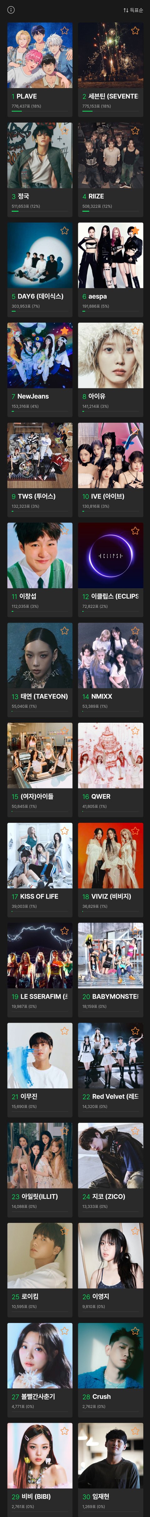 멜뮤 멜론뮤직어워드 탑텐 투표 결과