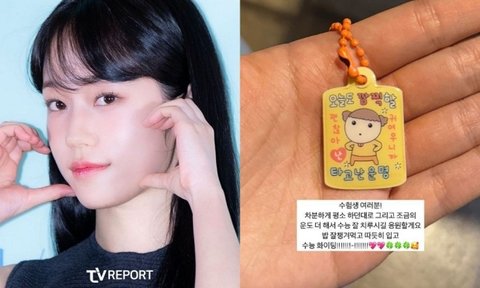 사진에는 '오늘도 깜찍할 타고난 운명, 괜찮아 난 귀여우니까'라는 문구가 적힌 부적 모양 키링을 손에 들고 있는 노윤서의 모습이 담겼다. 노윤서는 먼저 수능을 치른 선배의 마음으로 아낌없는 응원을 전했다.