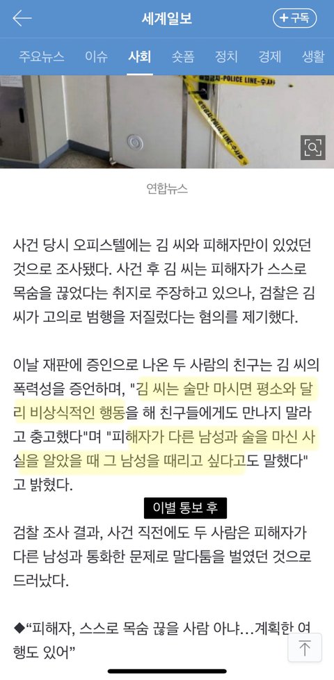 사건 발생 이틀 전인 통화 녹음본에는 피해자는 이별을 말하는 내용이 있습니다. 상황이 그려지지 않나요? 명백한 교제살인이라고 생각합니다.