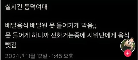 계란 던진걸로 폭력프레임 씌우는거 보니까 한국 여혐 심한거 실감 나던데. 물건에 계란 던졌다고 폭력시위 프레임 씌우는건 살면서 한번도 본적 없음. 오로지 동덕여대 시위만 계란 던진걸로 폭력시위 프레임 씌워짐.