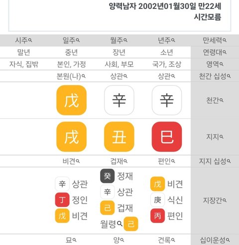 이번 전라노출 사진으로 사람들 입에서 "망신살" 오르내리는 걸 보고 망신살 진짜 있는지 궁금해서 사주 확인을 해봄. (네이버에 2002년 1월 30일 생으로 올라와 있는데 진짜 생일인지 가짜생일인지는 모르겠음)