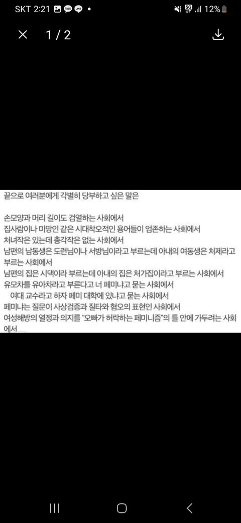 사실 남자여자를 떠나서 부당한 상황에 처한 동덕여대의 편에 당연히 서고 싶은데 이걸 편들면 마치 페미니즘이 맞다는 게 되는 거 처럼 장황한 이론을 펼치니까 동덕여대사건과 페미니즘은 전혀 다른 문제인데 오히려 이상한 사상을 개입시켜서 사건 자체가 겉으로 보이는 양태가 단순 혐오폭력시위같아짐