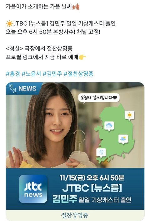 JTBC [뉴스룸] 김민주 일일 기상캐스터 출연