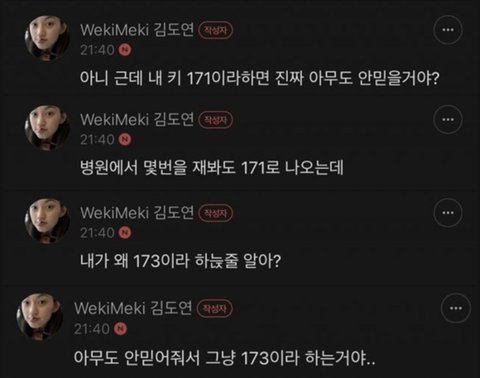 실제 키는 171이 맞지만 그냥 173이라고 하고 다님