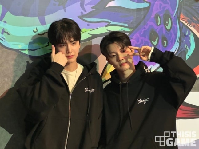 키디야 부스를 찾은 더보이즈의 영훈과 큐김재석