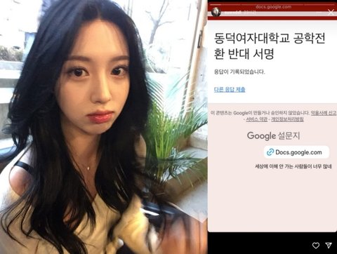 배우 김수정이 모교인 동덕여자대학교(동덕여대) 공학 전환 반대 서명에 참여했다.김수정은 16일 자신의 인스타그램 계정에 동덕여대 재학생들이 진행 중인 '남녀공학 전환 반대 서명'에 동참한 내용을 공개하며 "세상에 이해 안 가는 사람들이 너무 많다"고 적었다.