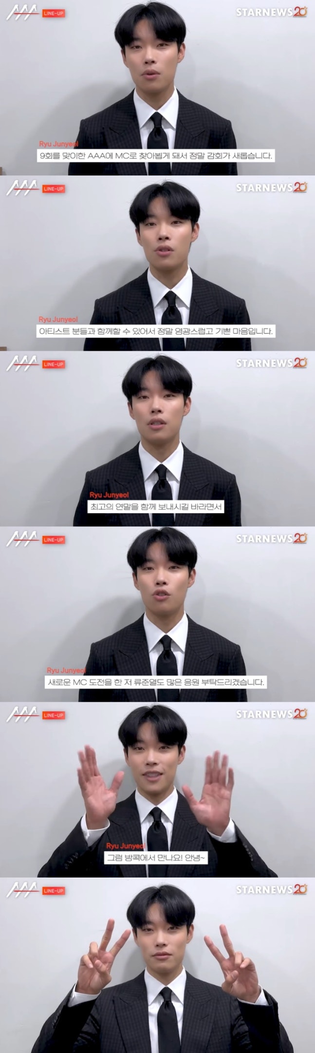 류준열은 "오는 12월 27일 방콕 임팩트 챌린저에서 개최되는 'AAA 2024'에서 멋지고 다양한 무대를 통해서 최고의 연말을 함께 보내시길 바라면서 새로운 MC 도전을 한 저 류준열도 많은 응원 부탁드리겠다. 그럼 방콕에서 만나요! 안녕~"이라고 전했다.