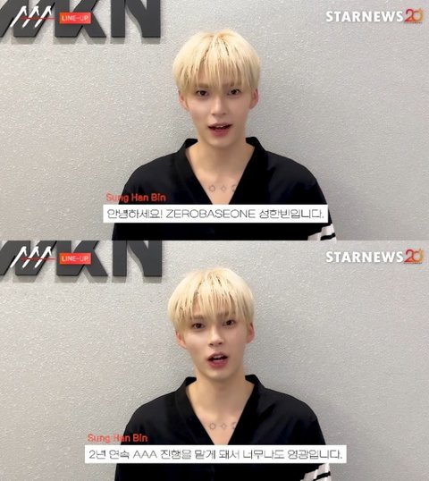 그룹 제로베이스원(ZEROBASEONE) 멤버 성한빈이 2년 연속 'AAA' MC로 나서는 소감을 밝혔다.'제9회 아시아 아티스트 어워즈'(The 9th Asia Artist Awards, 이하 'AAA 2024') 측은 최근 공식 유튜브 채널에 MC를 맡은 성한빈의 영상을 공개했다.