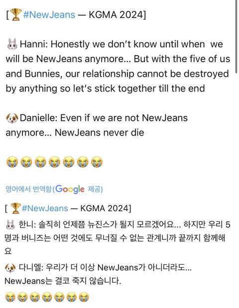 뉴진스 시상식 소감 존ㄴ 눈물남