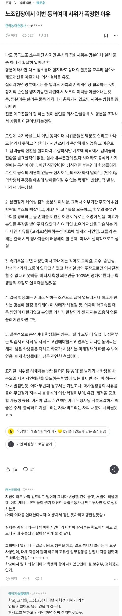 노조가 분석한 이번 동덕여대 시위가 망한 이유...
