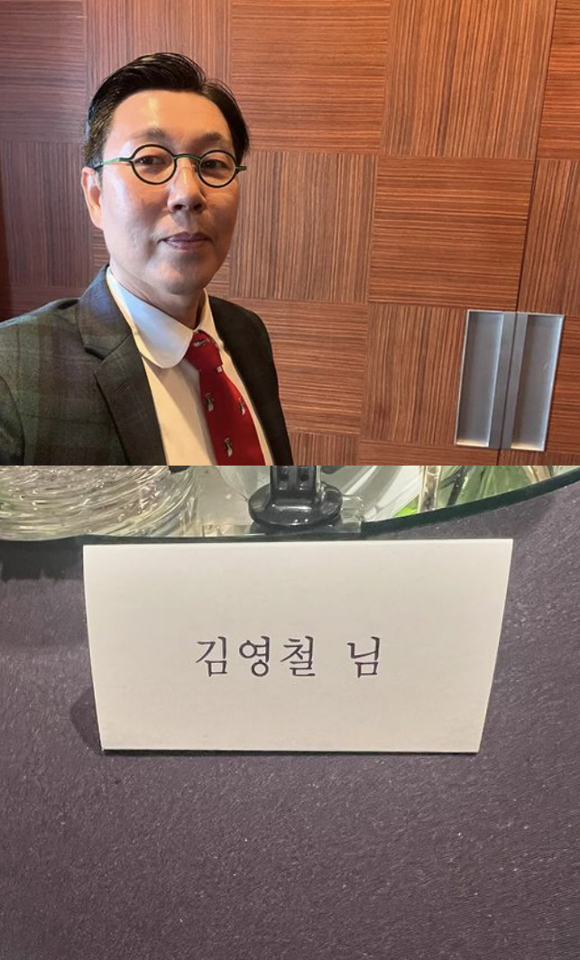 17일 김영철은 "민경훈 결혼식. '아는 형님' 멤버들 한 테이블. 경훈아 축하해! 멋지다 오늘. 잘 살아라. 녹화 때 보자~"라며 민경훈의 인생 2막을 축하했다. 김영철은 수트를 차려입고 하객석 셀카를 남겨 눈길을 끌었다. 다른 '아는 형님' 멤버들과 함께 축가를 맡은 김영철은 빨간 넥타이로 의상 포인트를 준 모습.