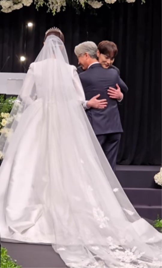 민경훈 채널공개된 영상 속에는 민경훈이 장인어른을 포옹을 나눈 후 신부의 손을 잡고 주례 단상을 바라보는 모습이 담겨 있다. 신부를 바라보며 환하게 웃는 민경훈의 눈빛에서 사랑이 뚝뚝 흘러넘친다.