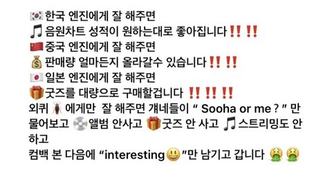 엔하이픈만 봐도 돈 안 쓰는 외퀴들 위주로 스케 돌린다고 한진들 탈빠 ㅈㄴ하고 라이즈도 불매한다고 했지만 실질적인 타격은 크게 없고 그러던데 얘네는 ㄹㅇ 돈을 언제 쓰는거임?? 저 짤대로 중국한국일본 빠수니들은 최소 1인분은 하는데 외퀴들이 저렇게하는 건 못 본 듯