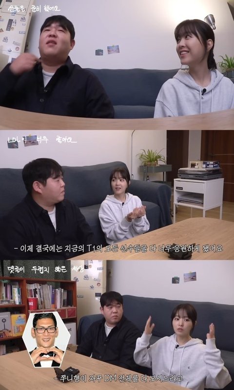 그러다 페이커를 알게 됐다며 "자기 실력을 과시하지도 않고 굉장히 겸손하지만 발전을 위해 노력하는 선수 자체를 리스펙하게 되더라"고 말했다. 그러면서 "보다 보니 팀을 응원하게 되고 결국 지금 T1 모든 선수들을 응원하게 됐다. 또 실제 가서 보니 너무 재미있었다"라고 전해 눈길을 끌었다. 또 게임을 하면서 '사람이냐' '벌레냐'는 이야기를 많이 들었다고 해 문상훈을 분노케 하기도.