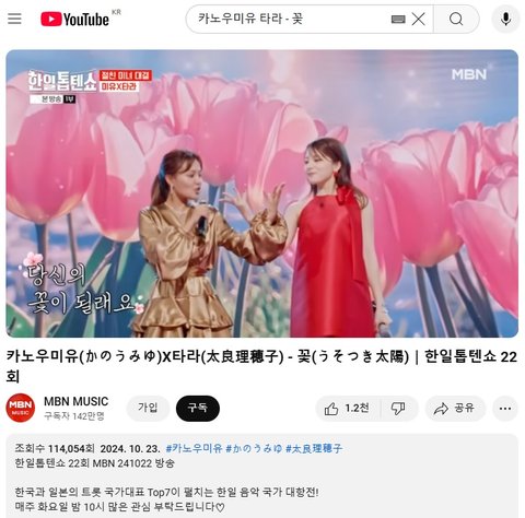 (사진2 설명) 카노우미유(かのうみゆ)X타라(太良理穂子) - 꽃(うそつき太陽)|한일톱텐쇼 22회