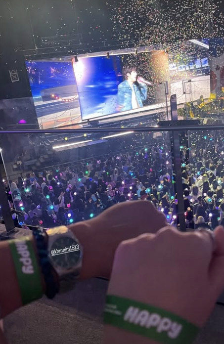 지예은은 17일 자신의 계정에 기안84의 계정을 태그하며 사진 한 장을 게재했다. 공개된 사진에서 지예은과 기안84는 이날 서울 장충체육관에서 열린 진의 첫 솔로앨범 '해피' 발매 기념 팬 쇼케이스 현장에서 나란히 앉아 팔찌를 맞대고 인증샷을 남긴 모습이다.
