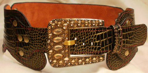 악어 무늬 엠보싱 천영 가죽으로 제작한 챕벨트입니다.(마디샤)