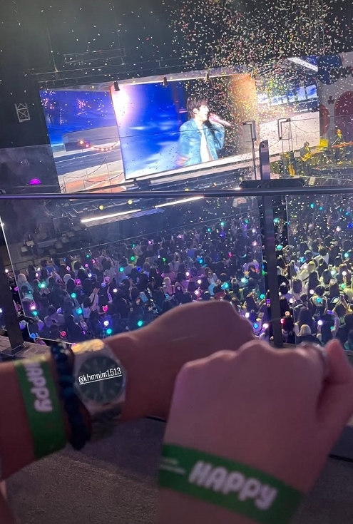 지예은은 11월 17일 개인 소셜미디어 스토리에 기안84와 방탄소년단 진의 첫 솔로앨범 '해피' 발매 기념 팬 쇼케이스 현장에서 찍은 사진을 게재했다.