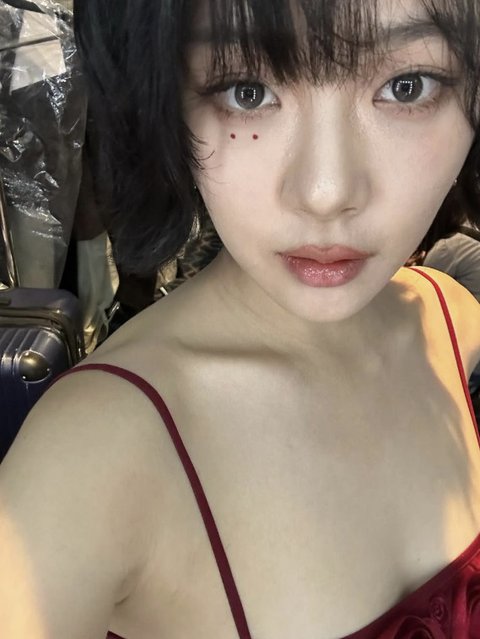 비비 소셜 계정 캡처비비는 장미꽃 디테일 장식의 레드 드레스와 스쿨룩 코디로 다채로운 분위기를 자아내고 있다.