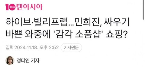 텐아시아 또 민희진 뉴진스 저격 기사 올림ㅋㅋ