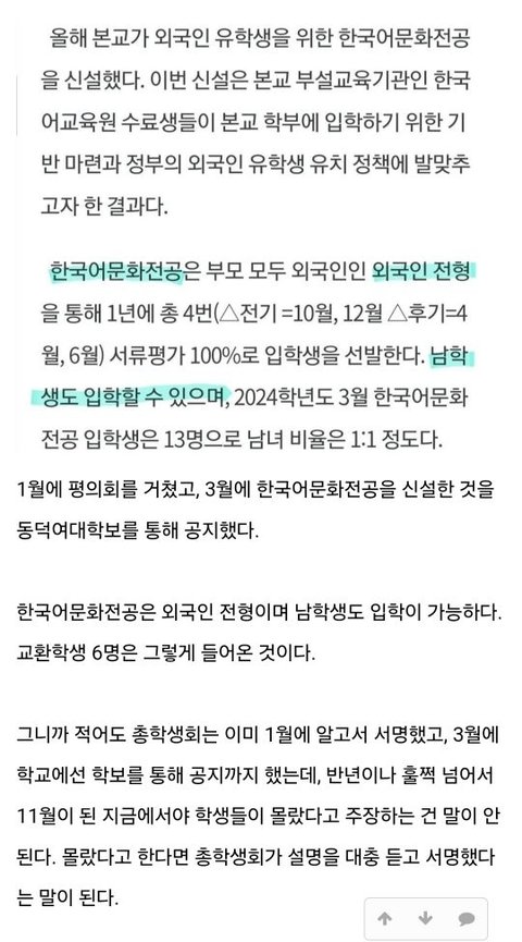외국인 6명 입학 소리소문없이 몰래 입학시켰다 하지 않았어?? 대의명분중 하나가 그거였는데 올초 관련안건회의에 총학 참석했고 사인까지 했네