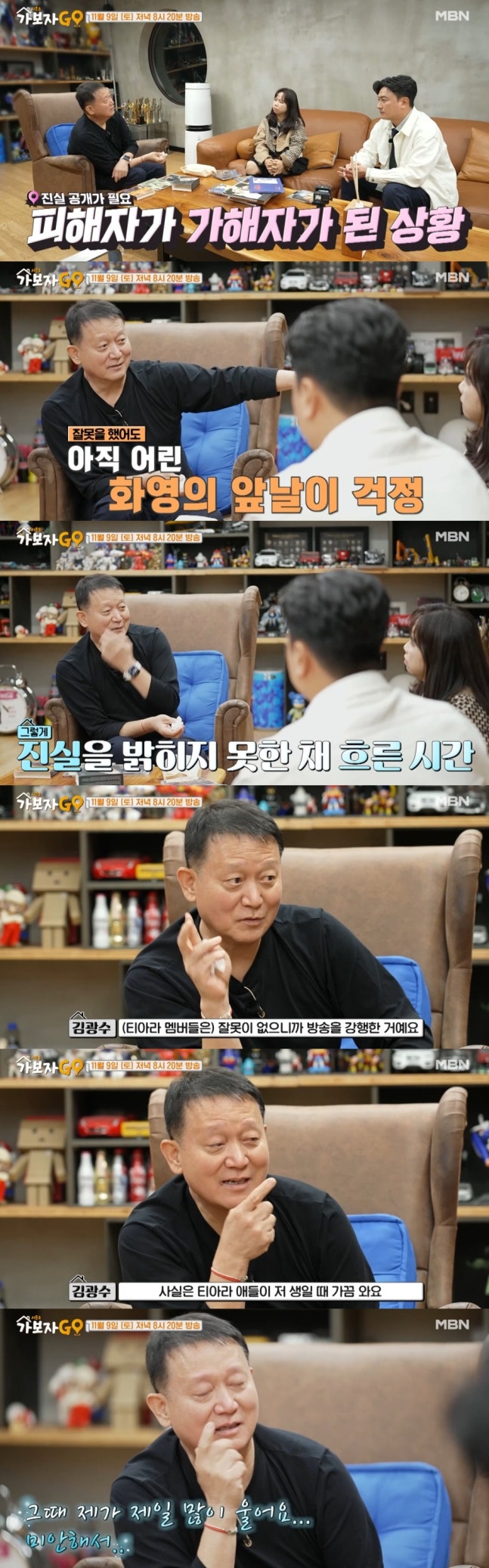 앞서 지난 9일 방송된 MBN '가보자GO'에서는 김광수 대표가 출연해 티아라 왕따 사건에 대해 사실이 아니라는 취지의 발언을 했다. 이에 대해 류화영은 장문의 글을 올리며 왕따는 사실이었다고 폭로했다.