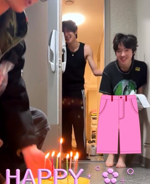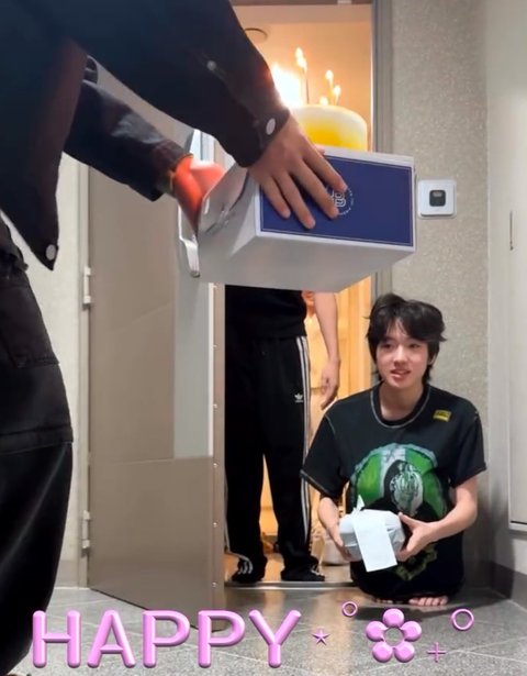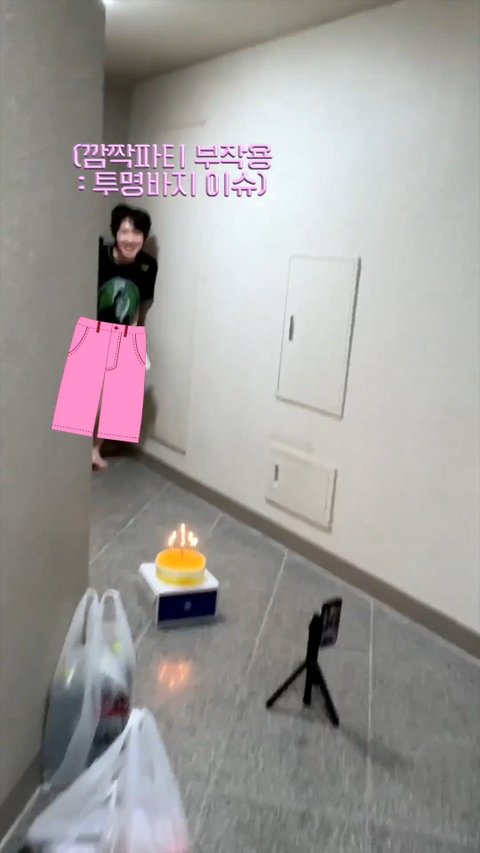 (투명바지 이슈로) 티셔츠에 들어간채로 케이크를 받는 사쿠야