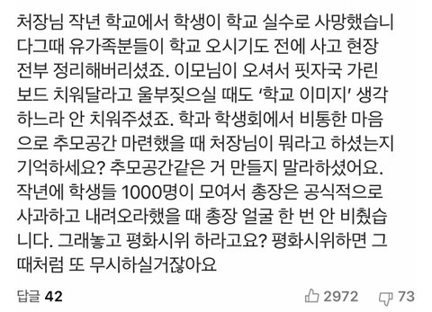 - 총장님 넘 비통해하고계셔서 꽁꽁 숨어계심 일이 이렇게 커질 줄 몰랐지만 일이 너무 커졌지만 일이 더커지면 나오실수도?(?)