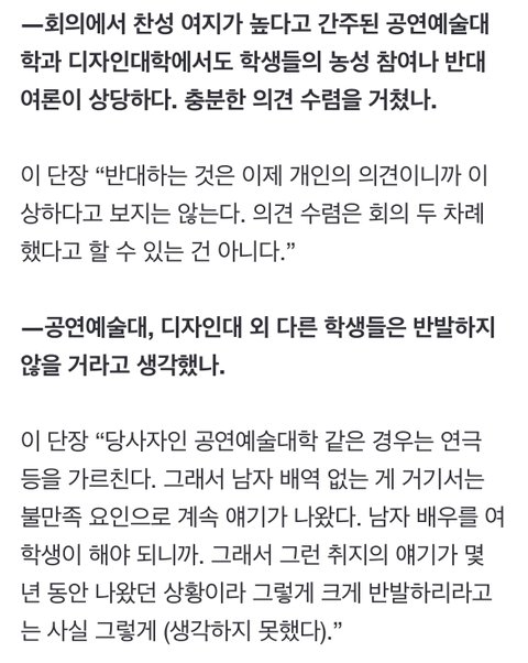 - 논의는 할거지만 학생들 다 반대해도 무산은 안됨(??)
