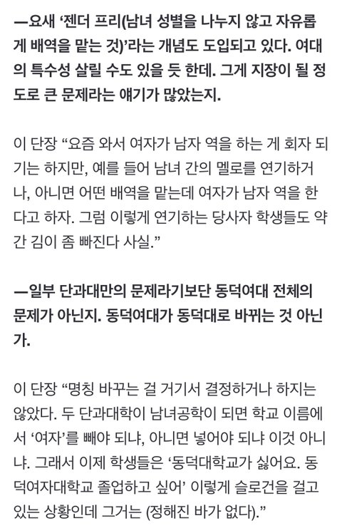 - 공학이 되어야 하는 이유는 경쟁률도 재정도 문제는 없지만 연극할때 여자가 남자역할 하면 김빠져서임