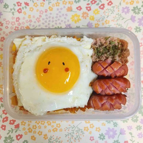 스팸김치볶음밥 (계란후라이반숙이 쵝오!) / 캔참치(냉장고에 조금 남았길래..ㅎ) / 비엔나소세지