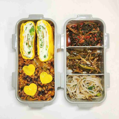 감자탕볶음밥 (감자탕집 딸래미입니당ㅎ) / 쪽파계란말이 / 열무김치 / 마늘쫑멸치볶음 / 숙주볶음