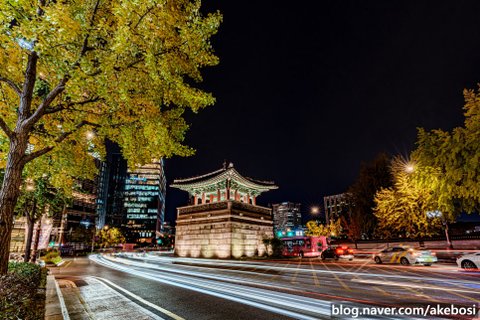 은행나무가 노랗게 물들어서 더욱 화려한 야경입니다.