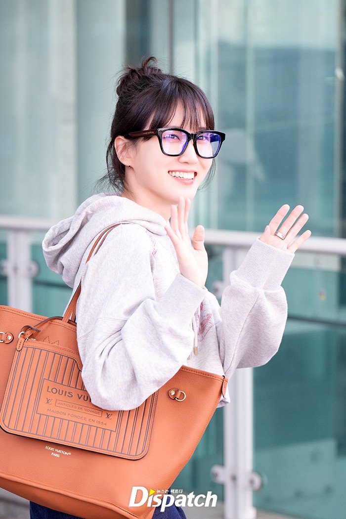 박은빈은 데님 팬츠에 후드 티셔츠로 깜찍한 공항패션을 연출했다. 러블리한 미모가 돋보였다.