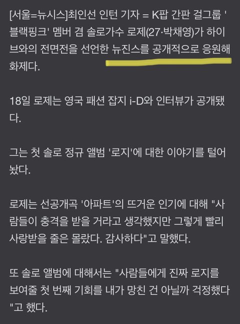 로제, '뉴진스' 공개 지지…"나는 그 소녀들을 사랑해"