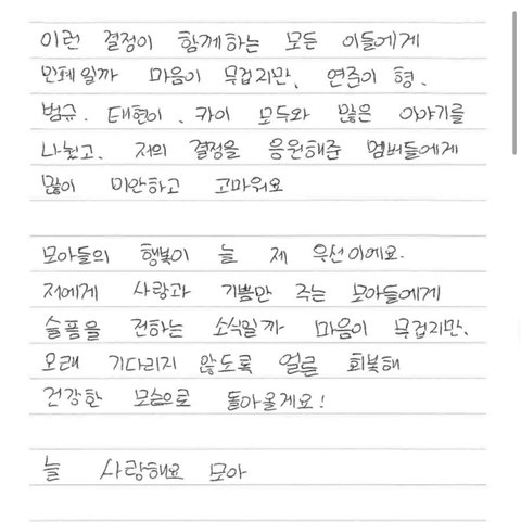 이정도면 걍 팀 전체가 좀 쉬어가야하는거 아닌가 싶음 얼마전에 휴닝이도 컨디션 난조였고 전체적으로 안좋아보이는데 한명이 쉰다고 해결될 문제인가