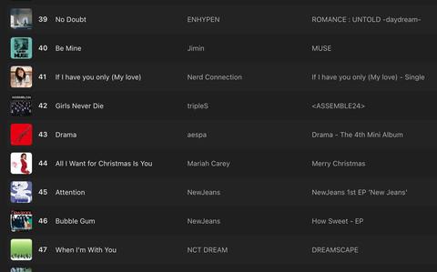 엔시티는 멜론이나 애플 뮤직 뮤직이나 성적 비슷하잖아 엔하이픈은 엔시티랑 이용자 수 비슷한 애플 뮤직 뮤직에선 순위가 그렇게 차이안나는데 멜론은 너무 차이나니까...