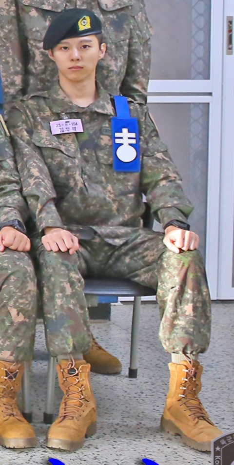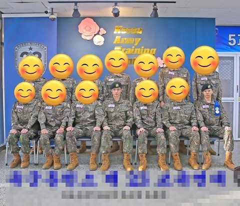 훈련소 사진이 이게 맞나 그냥 뭐 촬영하는 거 같음.. 군백기인데 얼굴이 쉬질 않음