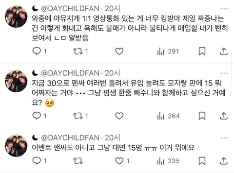 근데 어차피 저런 듣보 좋아하는 애들 특성이 자기 맘대로 가지고 놀기 편해서 5-6명이 몰려서 찾아다니는 거잖아. 듣보는 회사가 보통 스타트업이고 체계도 안 잡힌 상태라 딱히 빡세게 잡지도 않아서 사생짓도 편하게 하니까 그러는 거 아님? 애초에 유입따윈 너네한테 필요없잖아 ㅋㅋ 저 인원에 알맞게 그냥 놀다 버리고 다른 듣보 찾아가 그냥