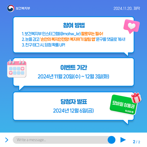 '손안의 복지안전망! 복지위기 알림 앱' 댓글로 남기고, 팔로우 하면 참여 끝