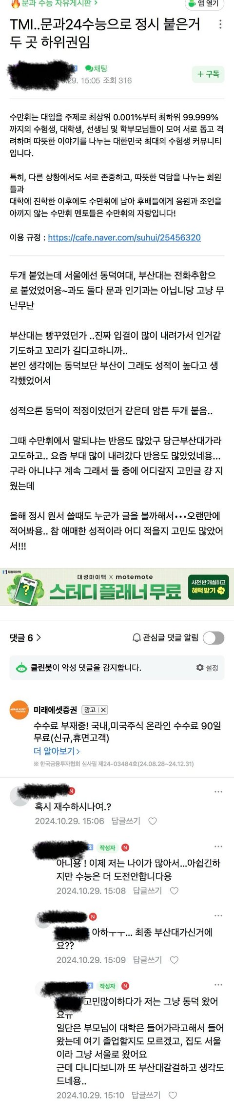 근데 집이 서울이면 동덕여대 가는 게 맞지 않냐 서울에서 부산까지 내려갈 정도로 부산대가 메리트 있진 않은데.. 부산 애들도 인서울 어느정도 라인 이상이어야 상경 하는 것처럼