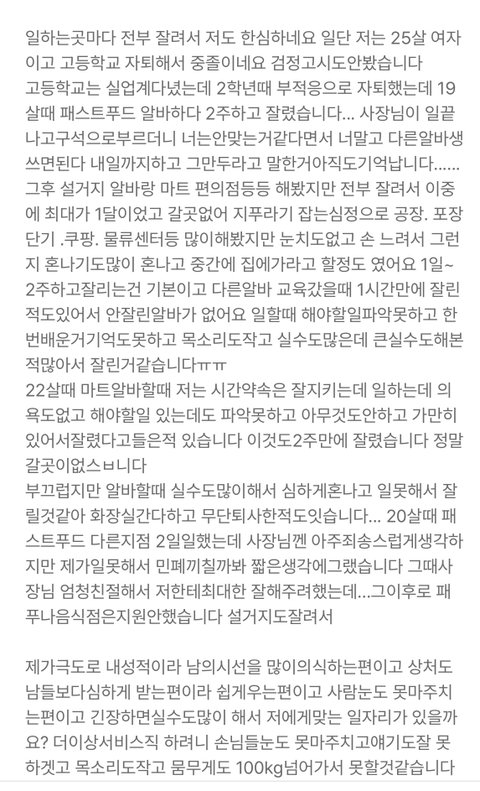 근데 좀 안타깝네 ;; 몸 쓰는 알바도 최소한의 일머리는 필요한데 그것마저도 없으면 ㄹㅇ 할 일이 없어