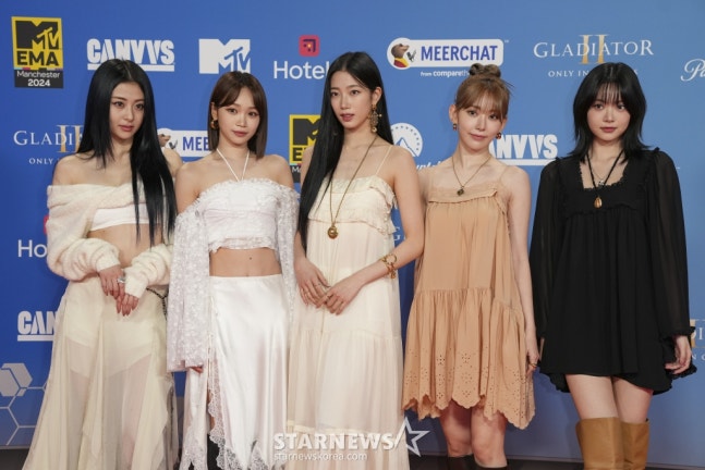 [맨체스터=AP/뉴시스] 르세라핌이 10일(현지시간) 영국 맨체스터에서 열린 유럽 최대 음악 시상식 '2024 MTV 유럽 뮤직 어워즈(Europe Music Awards·EMA)'에 참석하고 있다. /사진=이재훈민희진 어도어 전 대표가 빌리프랩에 이어 쏘스뮤직과의 소송도 내년 1월 첫 기일을 확정했다.