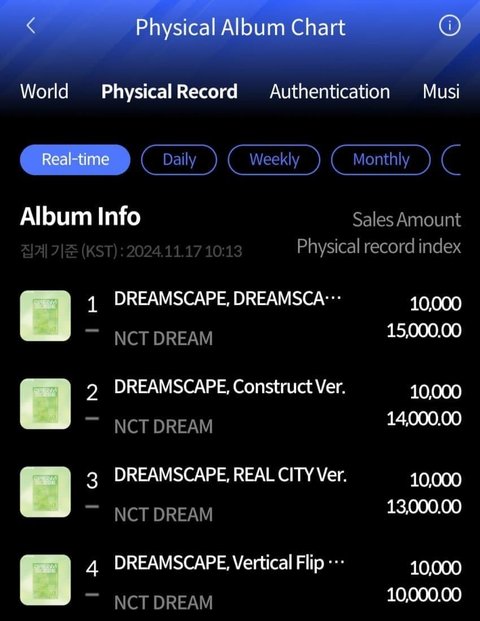 보통 초동 주간에 주말은 오프 물량만 반영돼서 일욜은 거의 안터짐 돌팬들은 다 알거임 근데 앤드림 이번에 50만장이 일욜에 터짐