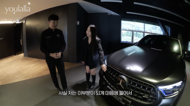 유정은 1억 가량의 외제차를 고른 이유에 대해 “저는 이 부분, 앞판이 예뻐서 골랐다”고 밝혔고, 직원은 “AMG 차량에만 이 그릴이 들어간다. 강인한 인상을 연출하는 차량이라고 보시면 된다. 그리고 이번에 새로운 부분이 브랜드 마크가 들어가는 부분인데, AMG 전용 마크가 달렸다”고 설명했다.또 직원은 “헤드라이트도 이번에 새로 들어간 요소인데, 현존하는 헤드라이트 중에 제일 좋다. 예를 들어 언덕을 올라가야 하면, 헤드라이트가 언덕 위를 비춰준다. 그리고 반대로 내리막길에서는 바닥을 좀 더 잘 비춰주도록 조사각이 조절이 된다”고 이야기했다.